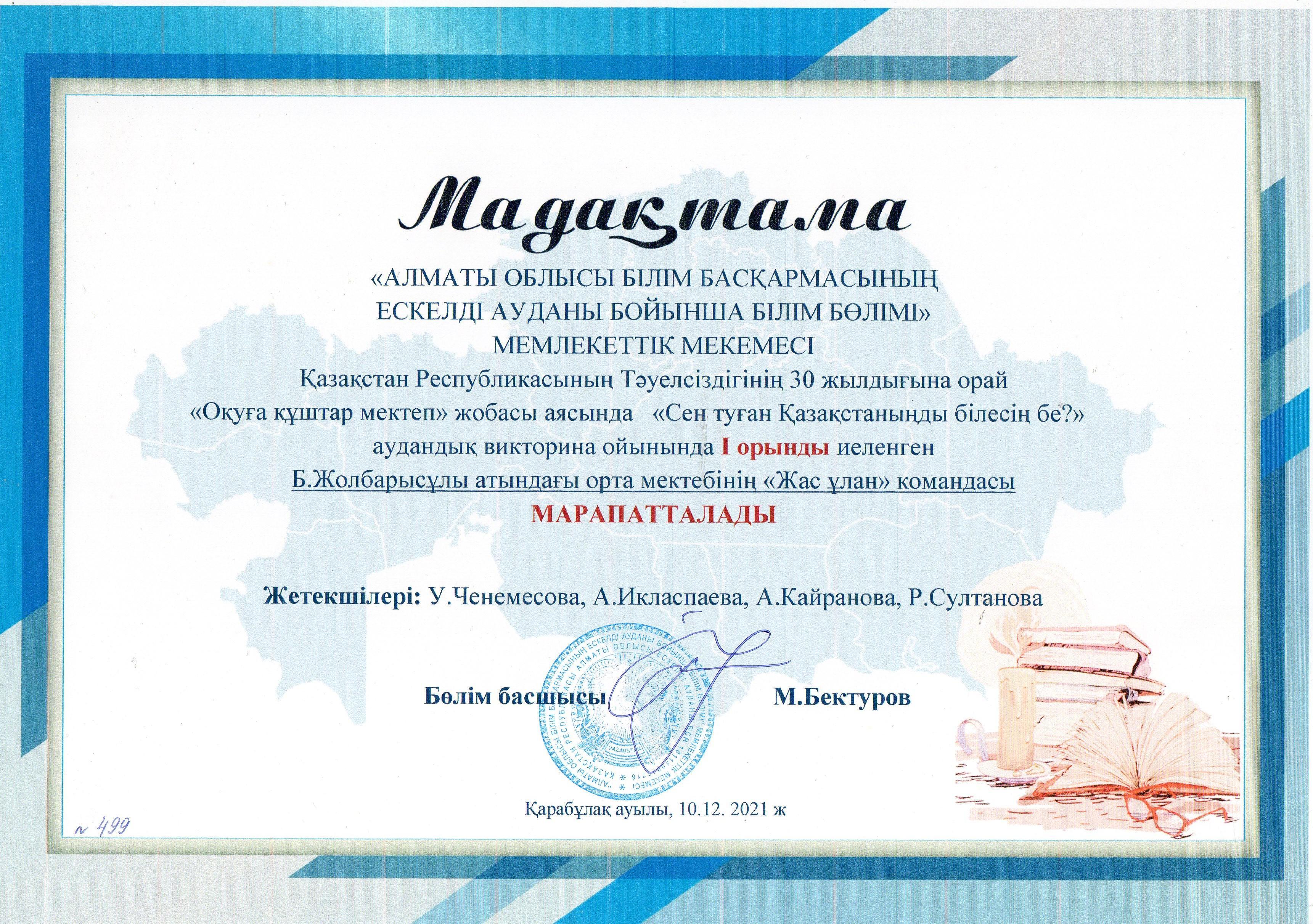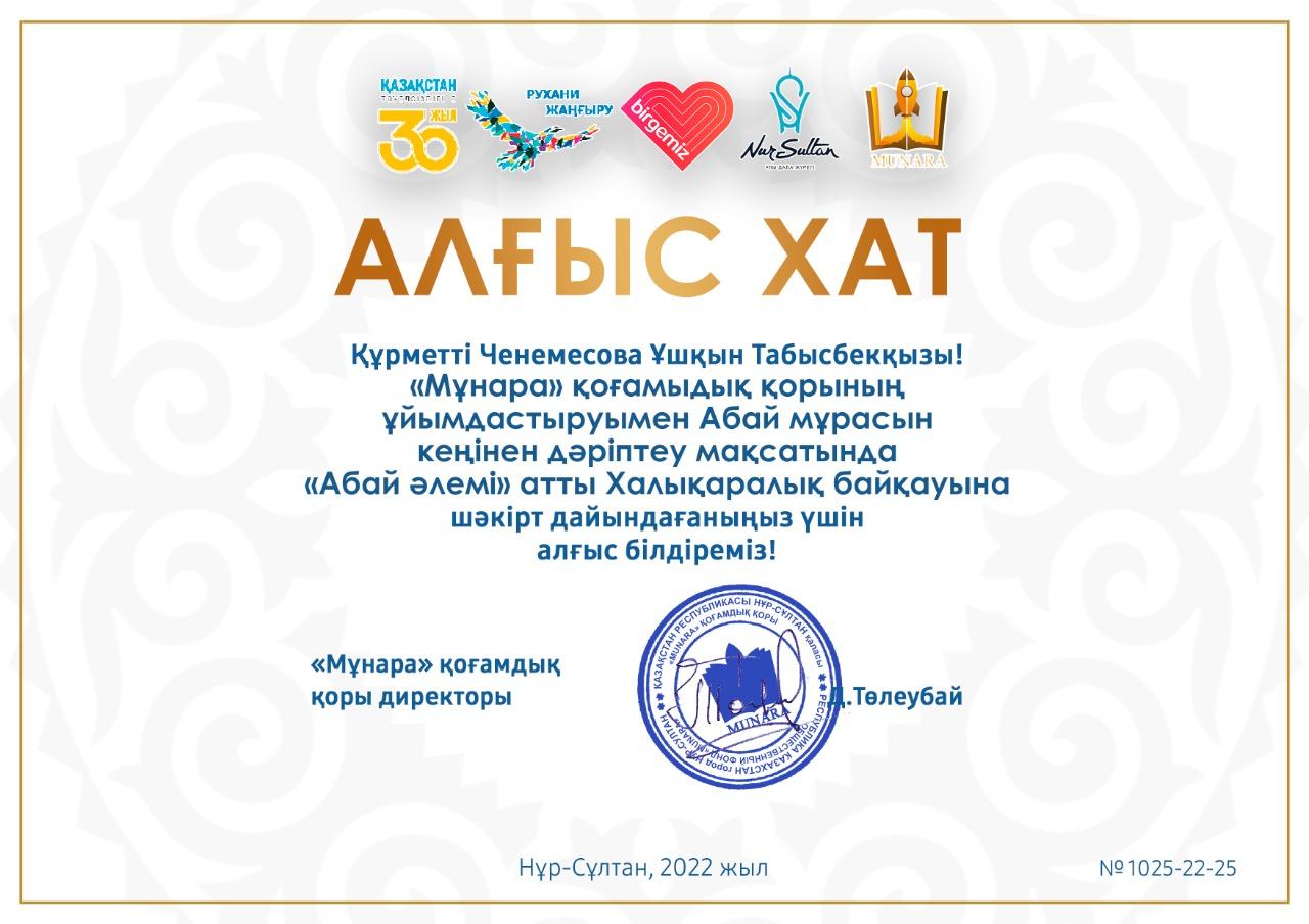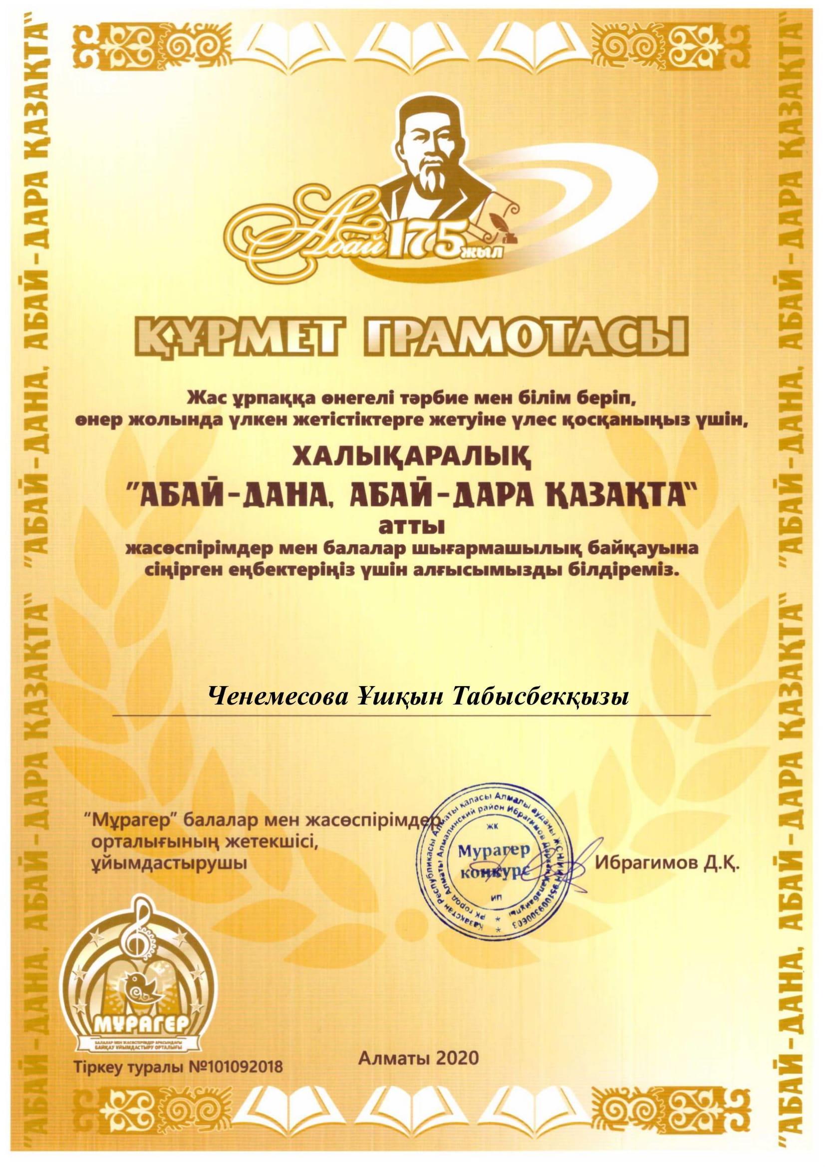 Ченемесова Ушкын Табысбековна » Ескелді ауданы