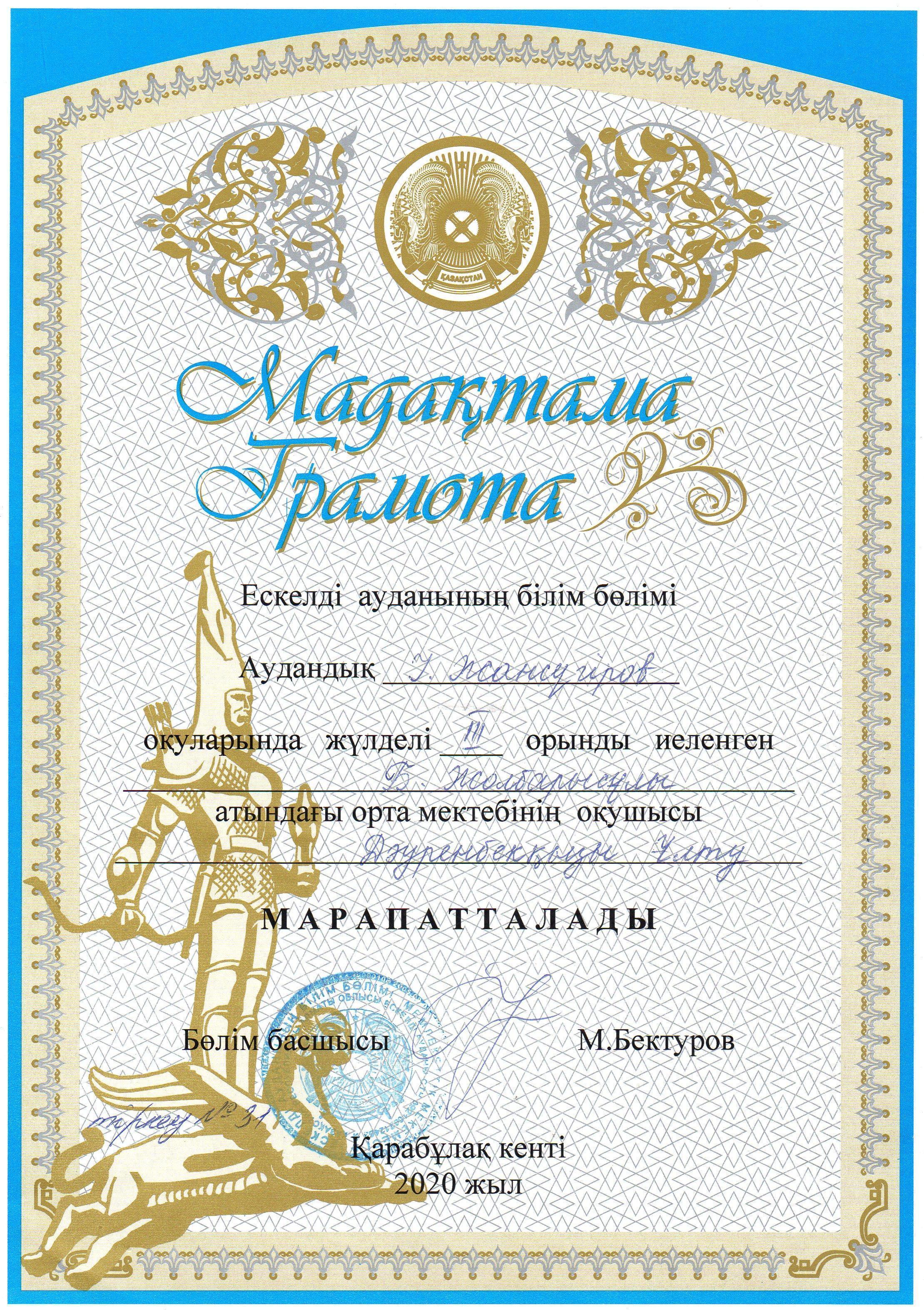 Ченемесова Ушкын Табысбековна » Ескелді ауданы